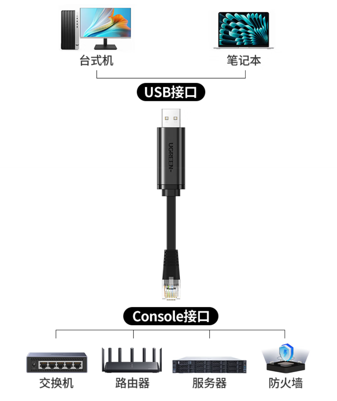 绿联/UGREEN 60813 数据线 Console调试线USB转RJ45控制串口线交换机配置线转3米